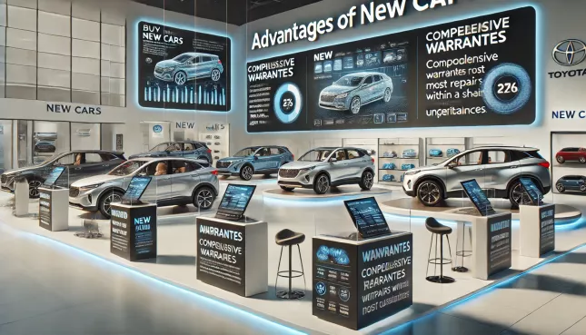 新車提供最新的技術和創新,包括先進的安全特性和更佳的燃油效率。購買新車意味著您將獲得完整的保固,確保在一定期限內大部分的維修都會被覆蓋,減少了維修成本的不確定性。此外,新車提供更好的個性化選擇,如顏色、內飾選擇以及其他配置選項。