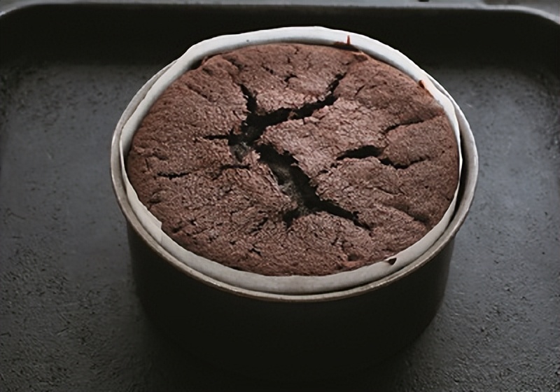 16.表面出現裂痕時就是烤好了。立刻從模具中拿出來,將烘焙紙剝除之後放在網架上冷卻。冷卻之後,撒上糖粉。