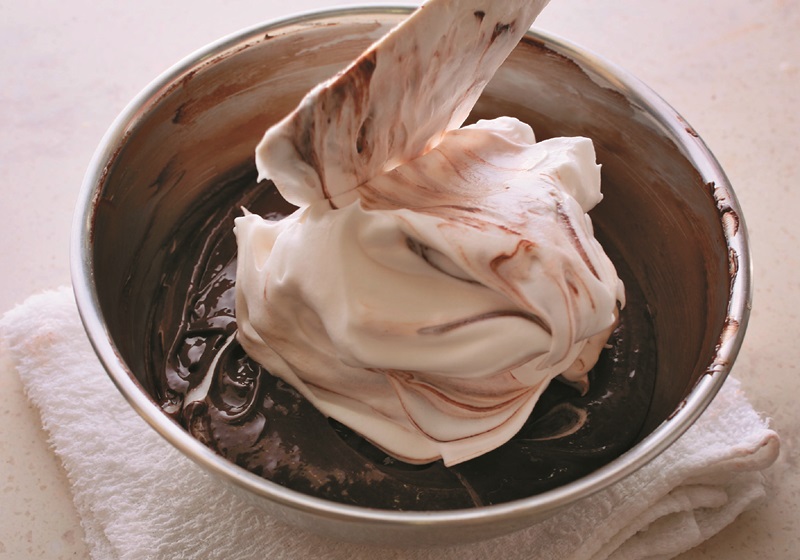 11.加入的蛋白霜可以稀釋巧克力蛋糕麵糊,讓麵糊軟化成蛋白霜容易拌勻的硬度。