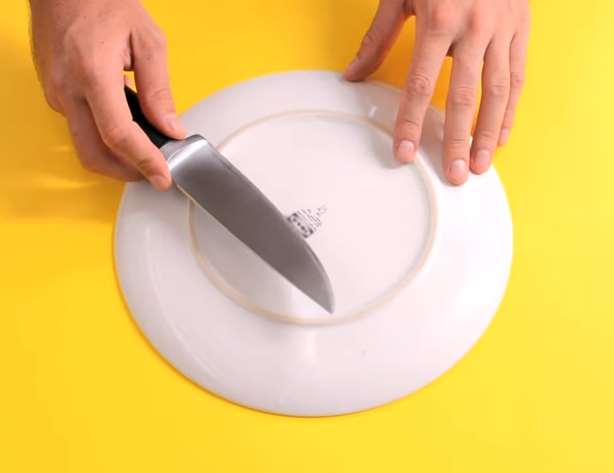 ▼只要將鈍掉的菜刀刀刃,在瓷盤的底部進行來回摩擦。