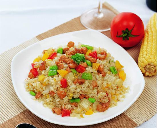 主料:米飯200g、松子(熟)10g、干玉米粒50g