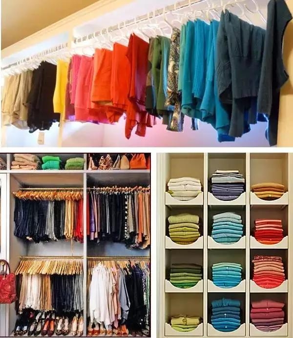 ▲ 還有按照季節來整理的。 而收納的一個重點,就是「疊」。用「疊」的方式整理衣物,適用於衣服多,衣櫃空間又不多的情況: