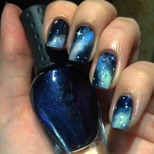 重點是要印上偏白色或黃色的甲油,這樣就有種繁星點點的感覺!
