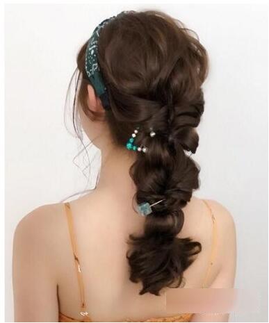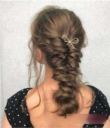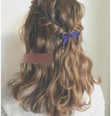 長頭髮製作捲髮髮型,漂亮中長發髮型兩邊都交疊著做成蜈蚣辮辮子,女生中長髮公主頭髮型發尾 都是內扣的碎發,中長發髮型要編的蓬鬆一些,有凌亂的梳髮結合起來更出眾,公主頭髮型有蝴蝶結髮飾