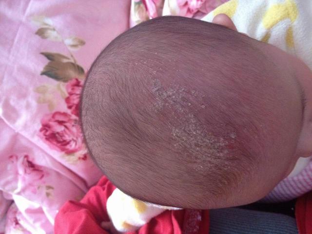 萱萱剛滿2個月,腦門前有一塊發黃,像魚鱗一樣的污泥狀東西,擦吧也擦不掉,看著怪噁心的。萱萱媽也是新媽媽,不知道怎麼想的,趁著洗澡開著浴霸比較熱,就拿毛巾使勁擦萱萱頭皮,想除掉污垢,後來直接用手搓,腦門都通紅還沒除乾淨,把萱萱也痛的直哭,就罷手了。