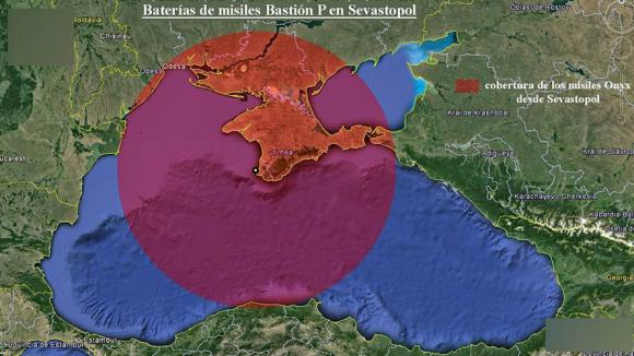 上圖為俄羅斯在烏克蘭附近的克里米亞部署一套K300P岸防反艦飛彈的火力覆蓋範圍 軍事專家告訴記者,俄羅斯媒體非常善於將最新裝備的武器公布於眾,讓西方媒體報道這些武器實際上就是在宣傳上壓倒西方,比起秘而不宣,適當的亮劍可以起到震懾的作用。 俄羅斯針對美國的挑釁行動,從來不肯妥協,2015年6月,俄聯邦黑海艦隊蘇-24戰鬥轟炸機飛行員直接沖入美國飛彈驅逐艦防空圈,騎著美軍軍艦頭頂掠過,迫使美國海軍「羅斯」號驅逐艦離開黑海東部水域。 2014年4月,當時一架蘇-24戰機讓美國裝備「宙斯盾」反導系統的最新驅逐艦「唐納德·庫克」號整套設備「失靈」。俄羅斯飛行員已不止一次向美國軍艦展示攔截邊界破壞行為的決心。 針對這次俄軍飛彈部署事件,軍事專家表示,實際上,中國早已擁有和K300P類似的陸基反艦飛彈,新型的「鷹擊-18」陸基反艦飛彈。和俄羅斯的K300P一樣,都是世界先進陸基反艦飛彈,而且鷹擊-18比K300P更為先進,採用半穿甲爆破戰鬥部,固體發動機動力。