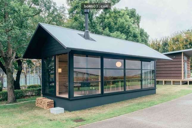 ▼2. 小木屋(木の小屋)。 第二款是由深澤直人所一手打造的小木屋,空間比起剛才的鋁屋大上15平方公尺,簡約的黑灰色調配上木質的材質形成一幅柔和的現代感,超適合當情侶兩人愛的小窩哦!