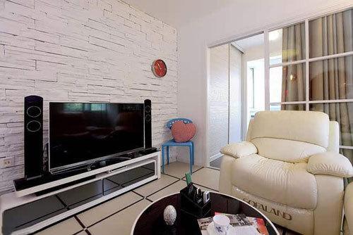 用磚拼貼而成的電視背景牆,線條的勾勒賦予了背景牆高雅的氣質。
