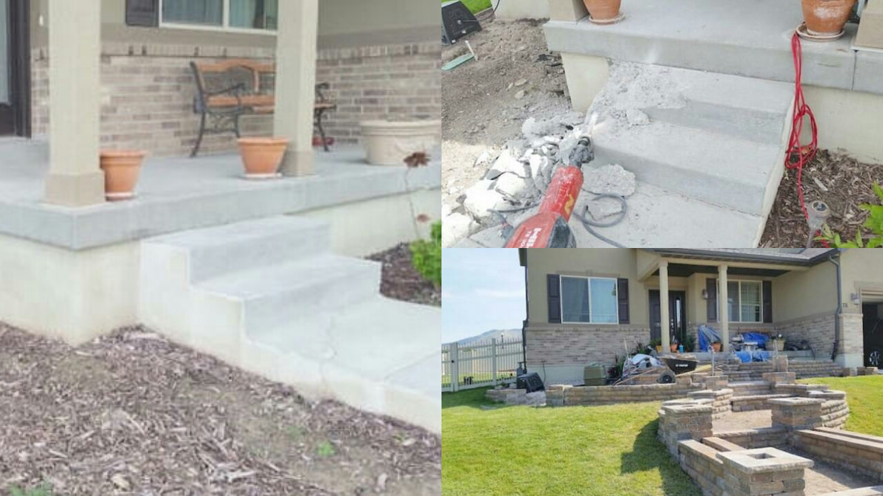 他開始用電鑽先處理掉舊的無聊台階,他笑著說:「我鄰居看到的時候還以為我精神狀況不穩定。」