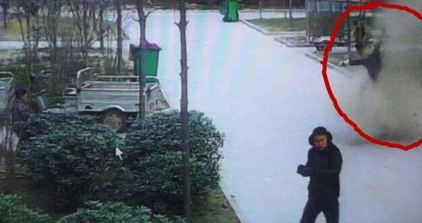 人孔蓋內傳來爆炸聲,人孔蓋和男孩都被炸飛,導致男孩在空中翻了一圈後直墜落在地。