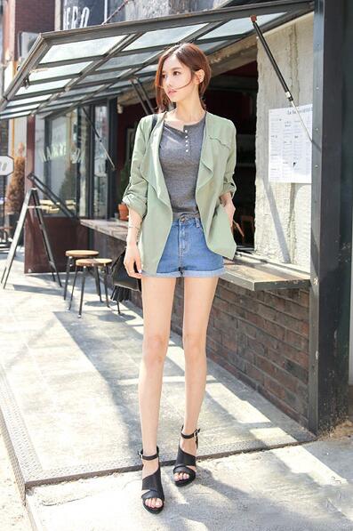時尚休閒的軍綠色外套,典型的韓式風格,清新又好搭,
