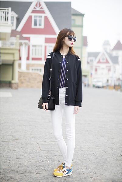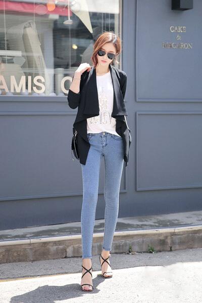 搭配白色T恤和小腳牛仔褲,清新大方,又很顯瘦。