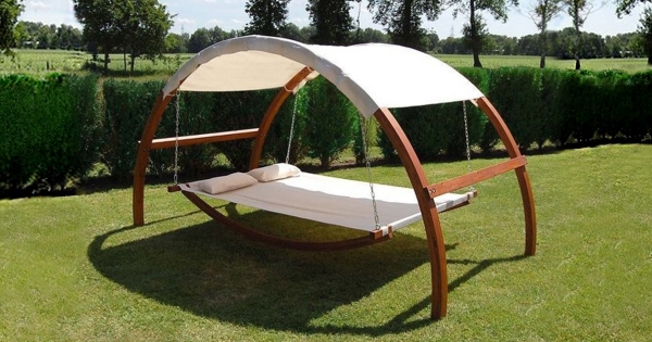 ▼2. 掛式沙發。後院中有大樹的話一定要有這樣的沙發,坐上去格外浪漫。