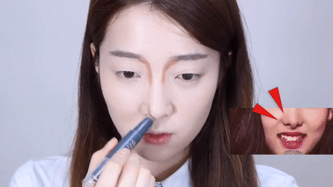 Kimdax在鼻樑兩側眉頭處使用了Pony與Etude House合作的修容魔法棒!