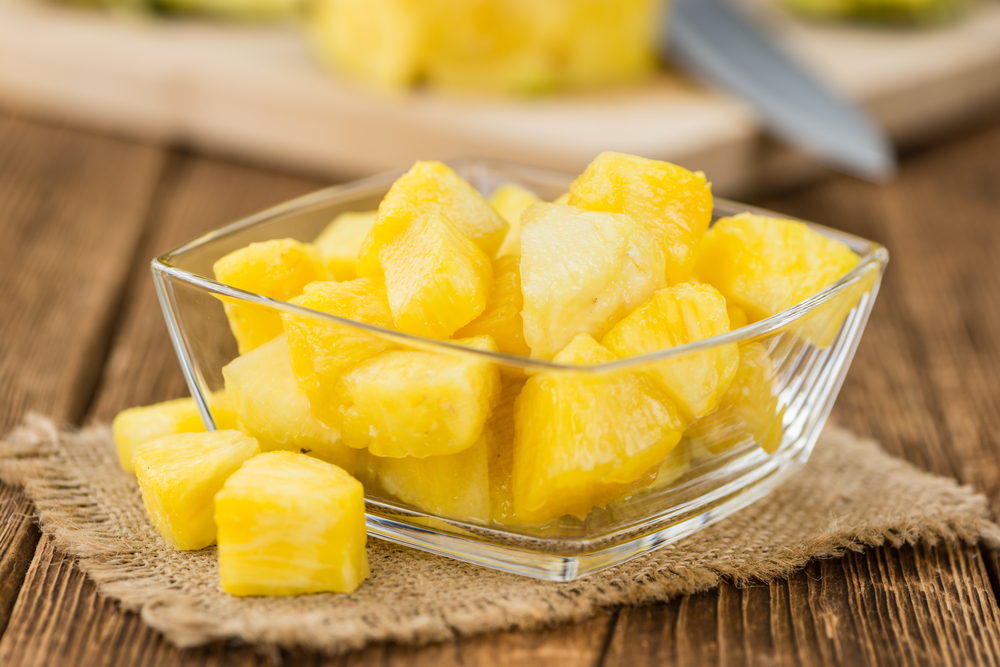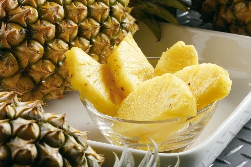 最具消食作用的減肥水果:鳳梨,因其含有其他水果所沒有的豐富的鳳梨蛋白酶,具有類似木瓜酵素的作用,當其進入人體腸胃中之後,能夠幫助人體分解蛋白質並有效地溶解掉脂肪,特別是消化掉肉類的脂肪蛋白,從而預防人體攝取過量的脂肪。鳳梨中含量最大的膳食纖維和蛋白酶還能助消化。膳食纖維進入腸胃中體積增大並且吸附能力好,可以帶走腸道中多餘的脂肪和有害物質等。