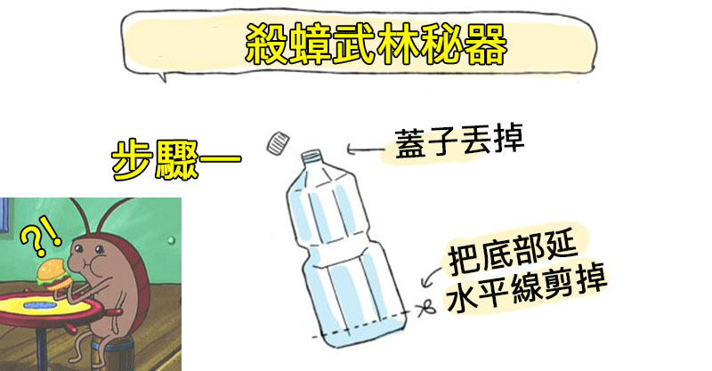 身為地球人的你,是不是每次看到蟑螂都只有大喊救兵的份?還被室友罵是廢物?沒關係,推特用戶@nokuhashi要來拯救大家了!只要3步驟,你再也不用害怕跟蟑螂對戰了。首先拿出寶特瓶,把蓋子丟掉,再把瓶底剪掉,確保剪得時候邊緣要剪成直線!