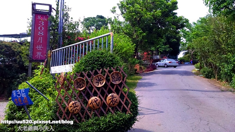 蜿蜒的小路終於看到了指標:草山308月世界,最下方是第三停車場,