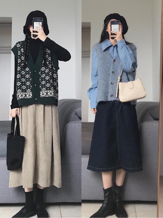 小個子的女生特別適合穿針織馬甲即使是搭配半身裙,也絕對不會壓身高,很容易打造層次感。喜歡有點文藝氣息的女生們,可以選擇寬鬆針織開衫馬甲,自然復古,再來一雙短靴的加持,又會顯得少女心滿滿!