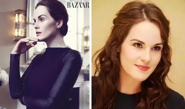 Michelle Dockery臉有點長,但因為額頭飽滿,特別好看,所以紮起頭髮來很顯氣質,尤其是看側臉,五官很突出,頭髮披著沒有完全展露飽滿額頭和側臉的時候,就沒那麼驚艷了。