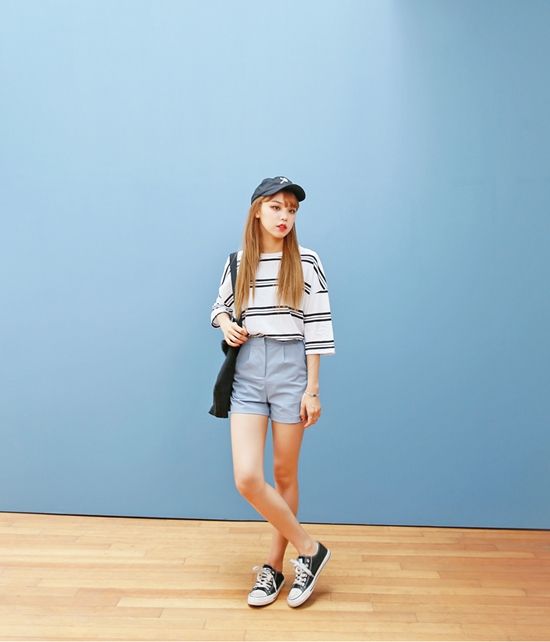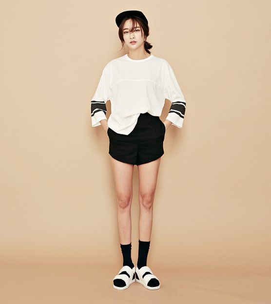 *****3. 長襪+運動涼鞋*****如果覺得T恤加短褲太單調的話,可以把重點放到鞋子上~Photo by PinterestPhoto by Pinterest一雙長襪加一雙運動風涼鞋超有風格的!*****4. 韓版運動短褲*****Photo by taobaoPhoto by taobao