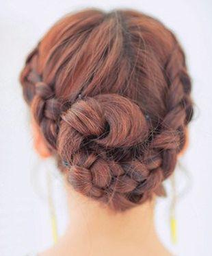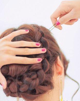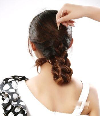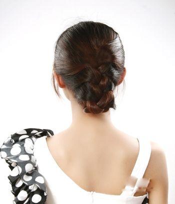 第六步:將麻花辮完全掩藏在蜈蚣辮的下方,一款簡單精美的編發盤發就出來了。
