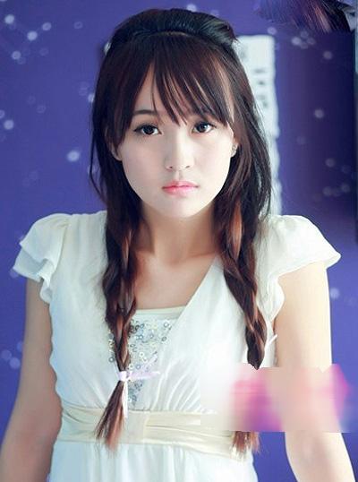 齊劉海的側邊麻花辮馬尾編發略微的有一絲的凌亂感,但是卻是很有居家感的呢,而齊劉海更多的是起到了修顏的目的呢,美眉好看又很小清新呢。