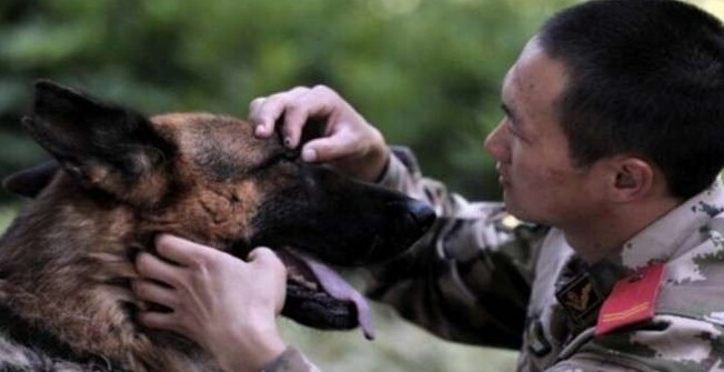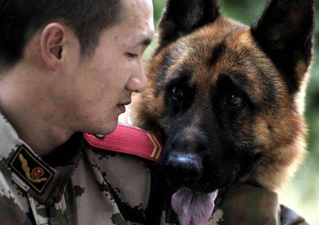 永遠的戰友!蔣玉濤在雲南武警隊警犬班服役,他是警犬「黑豹」的訓練員,2年來他們一起訓練、執勤、洗澡,早已變得像兄弟一樣感情深厚,有很多話蔣玉濤不用說,黑豹就懂。