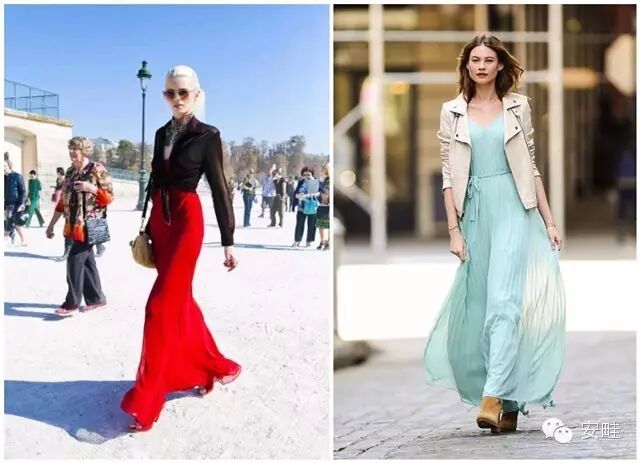 超長裙或者闊腿褲,搭配高跟鞋,打造長腿效果。