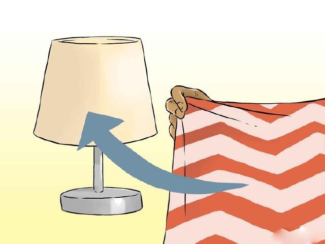 蓋燈罩。製作一個帶褶紋的膠水面料蓋到燈罩上。