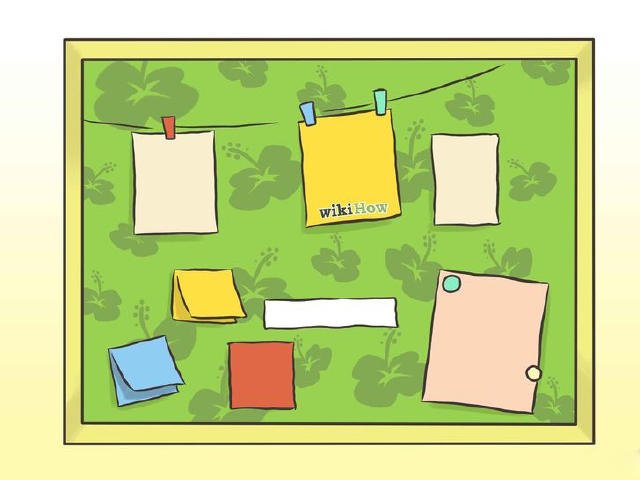 遮蓋一個軟木板(公告板)。使用一塊大的衣料來覆蓋軟木的正面和側面。確保面料在板子的背面用膠水粘牢。