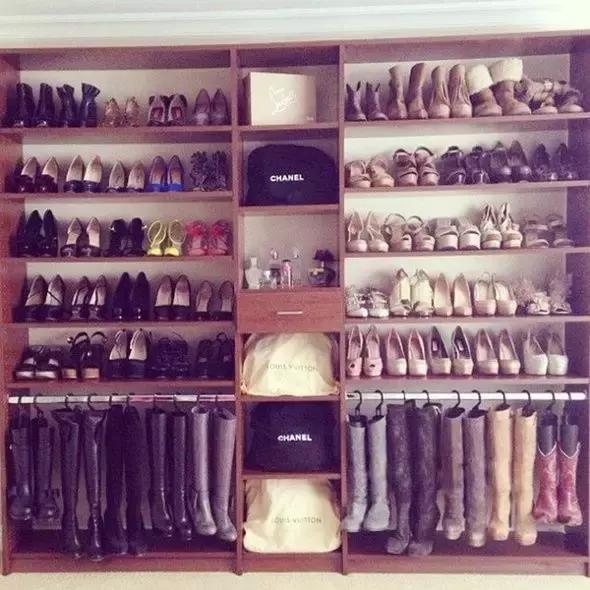 收納秘訣:把鞋子按照顏色風格分類放在每一層的架子上擺放整齊,這樣才不會顯得很雜亂。