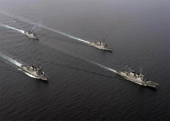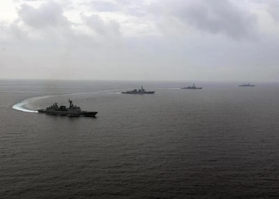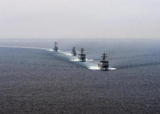 美韓兩國的聯合艦隊在朝鮮半島東部海域舉行聯合軍事演習,演習重點為聯合反潛和精確打擊能力。