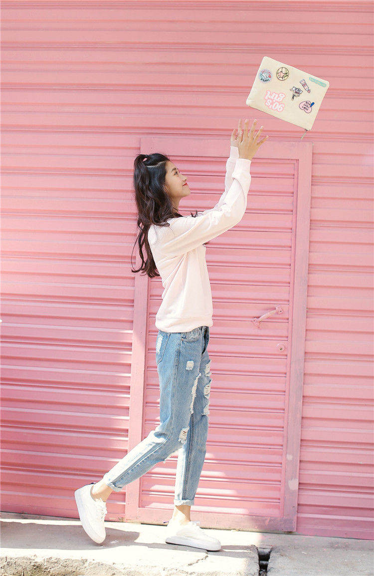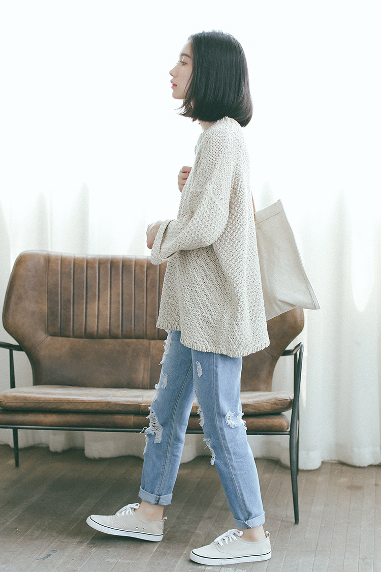 破洞牛仔褲是不敗經典〜簡單配上針織衫和衛衣已很好看!