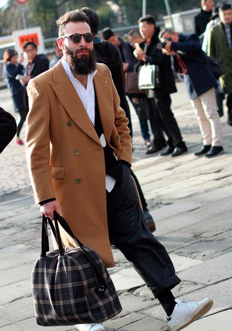 4、無論是單品都能與駝色大衣搭配,哪怕是運動鞋。