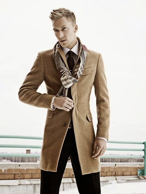 大地色系的大衣如果搭配同樣自然的綠色圍巾,那還真是個自然型男了。