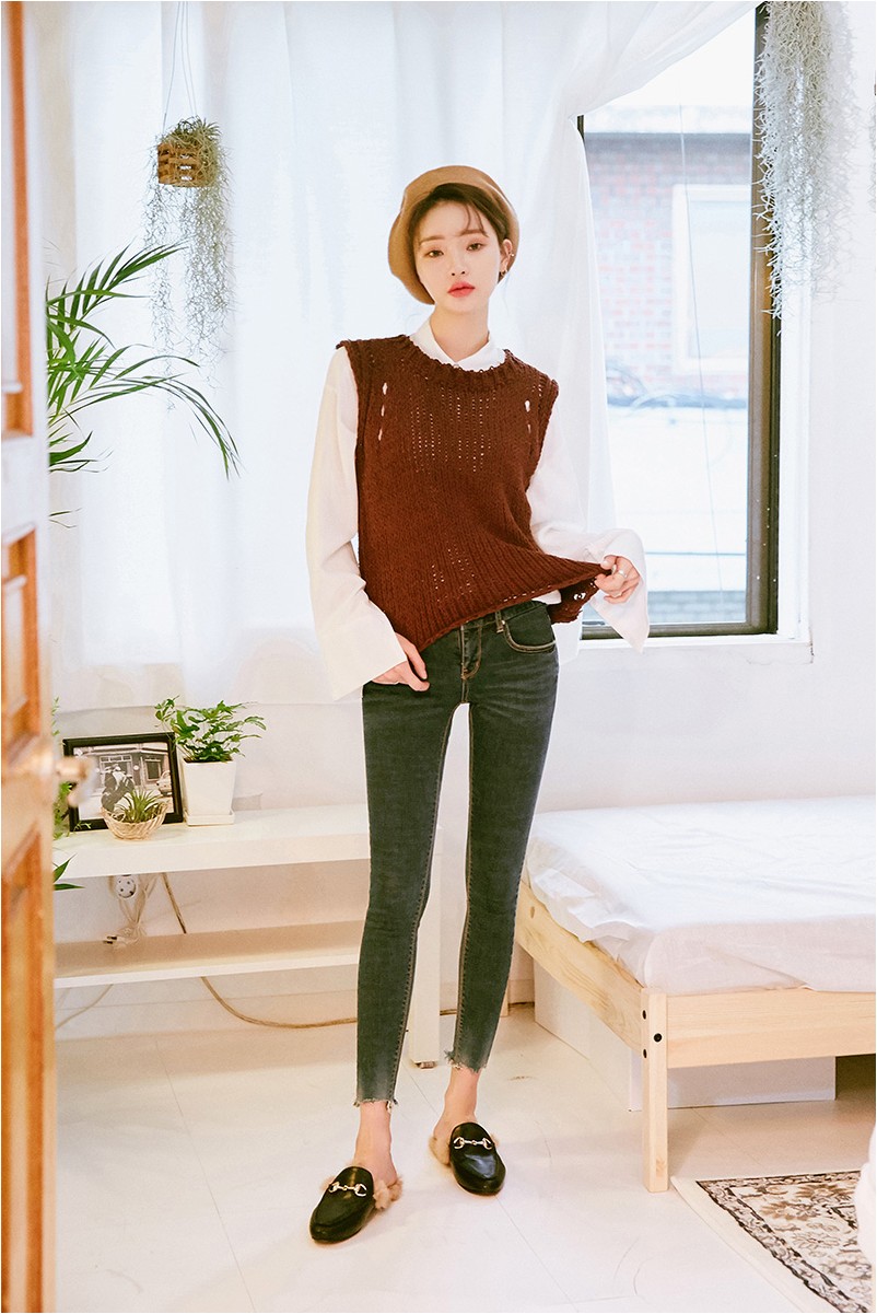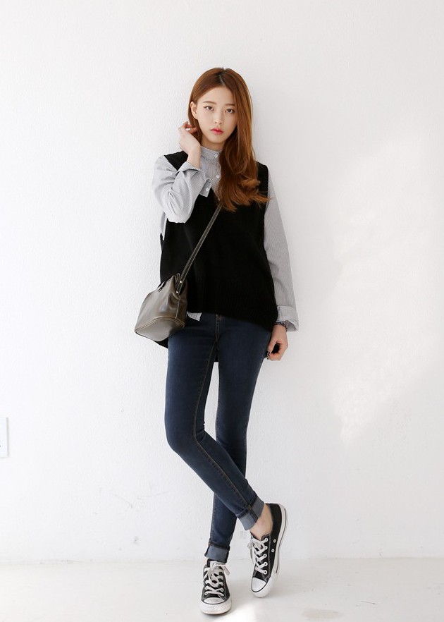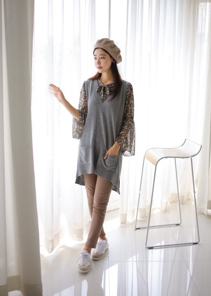 Photo by kooding針織背心x緊身長褲子反而帶出文靜的斯文感!