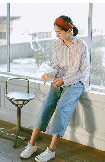 如果想穿起來隨性休閑的話,可以配搭丹寧中長闊腿褲喔!