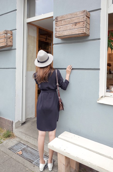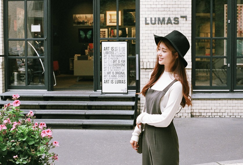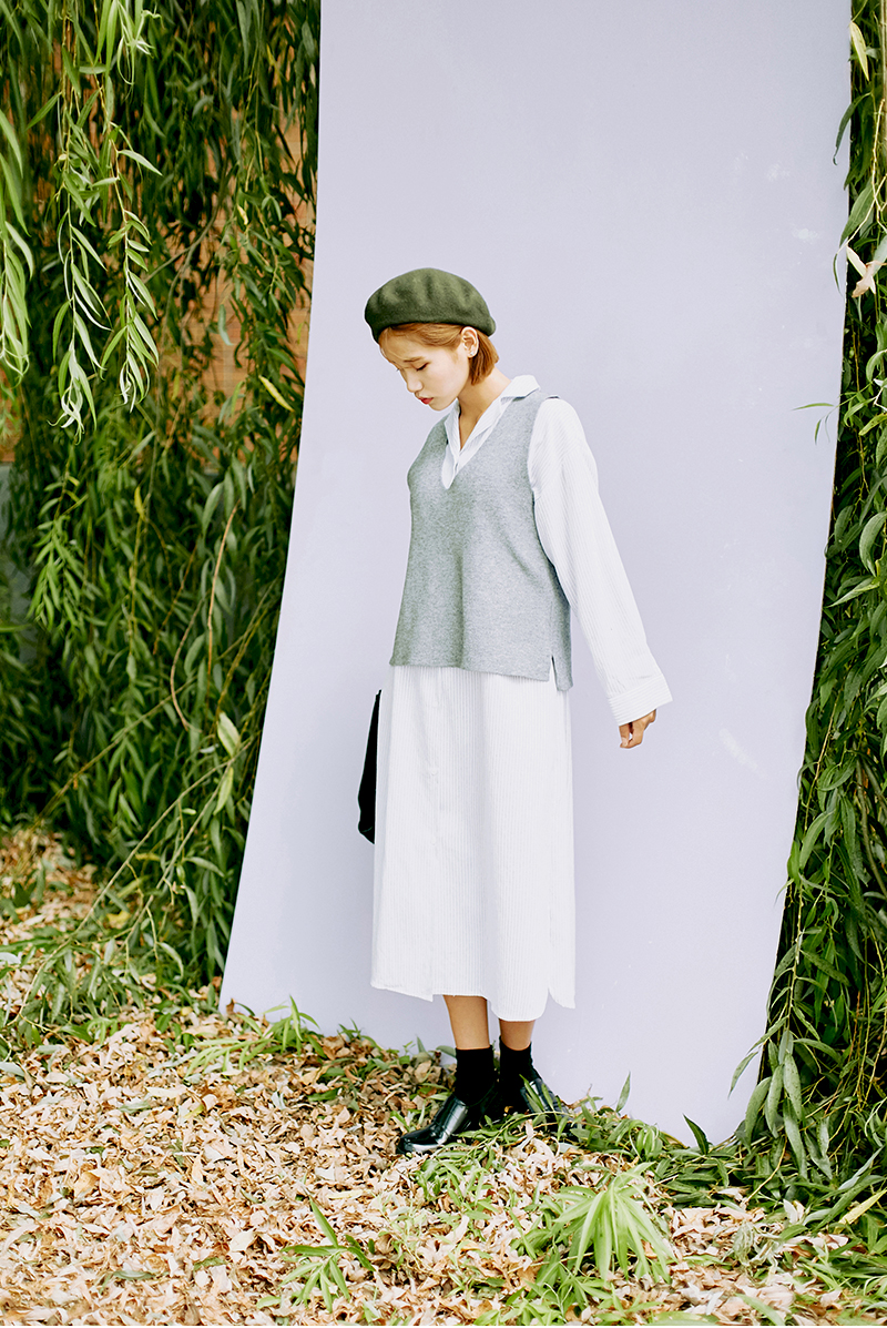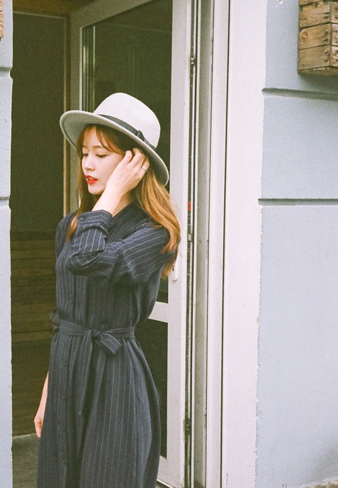 氣質女生當然要必備一條優雅文青的連身裙啦~再配戴灰色的闊邊帽,好感度立即UP啦!