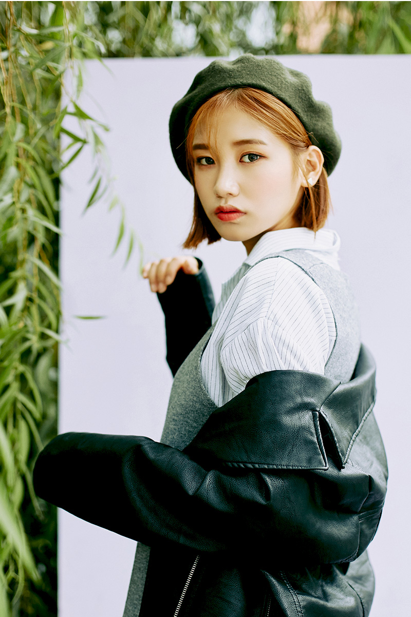 再加一頂墨綠色貝雷帽超有獨特的個性風啦!