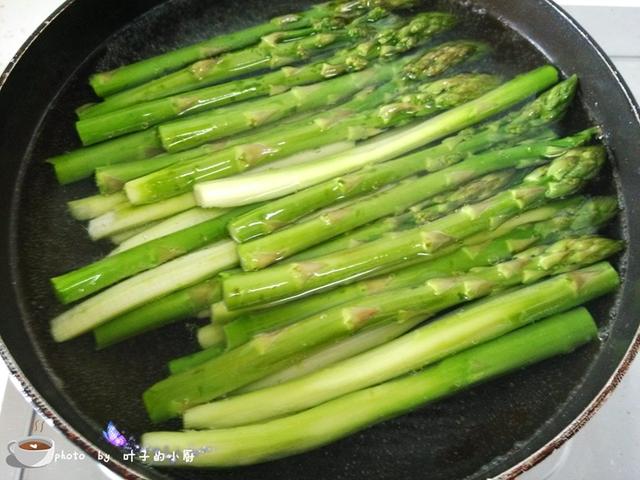 小貼士:一、蘆筍焯水的時候加入的鹽稍微多一點,這樣顏色漂亮,而且能入味;