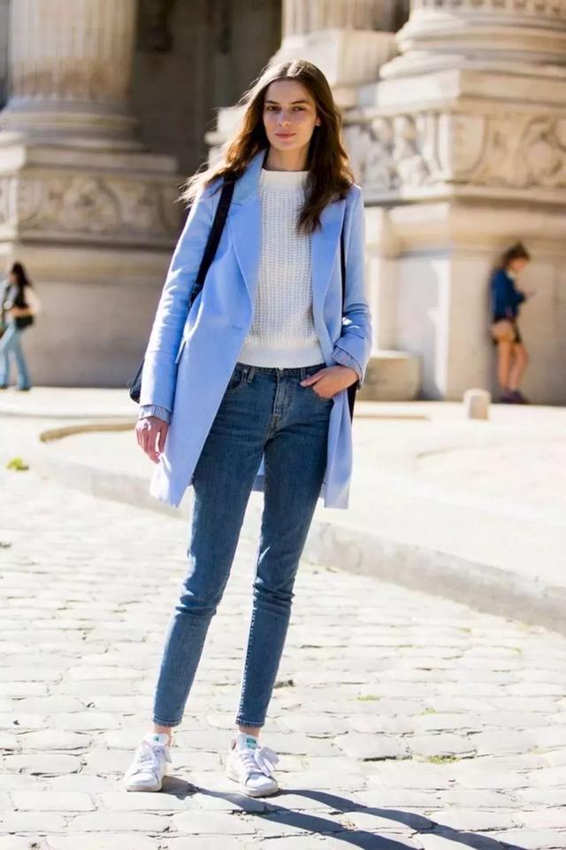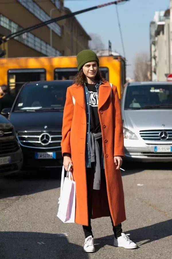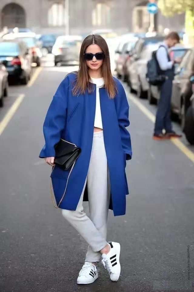 彩色大衣+小白鞋