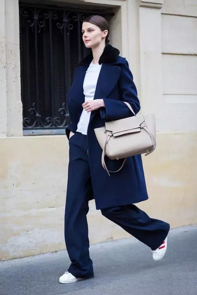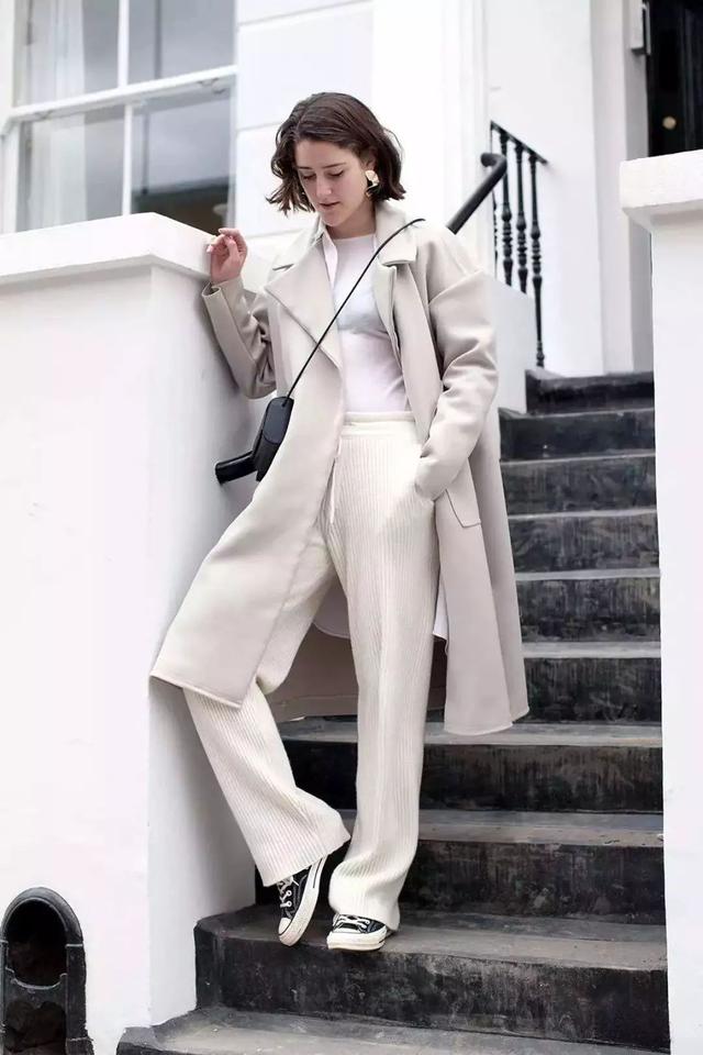 大衣+ 球鞋,再來一條有氣場的闊腿褲吧