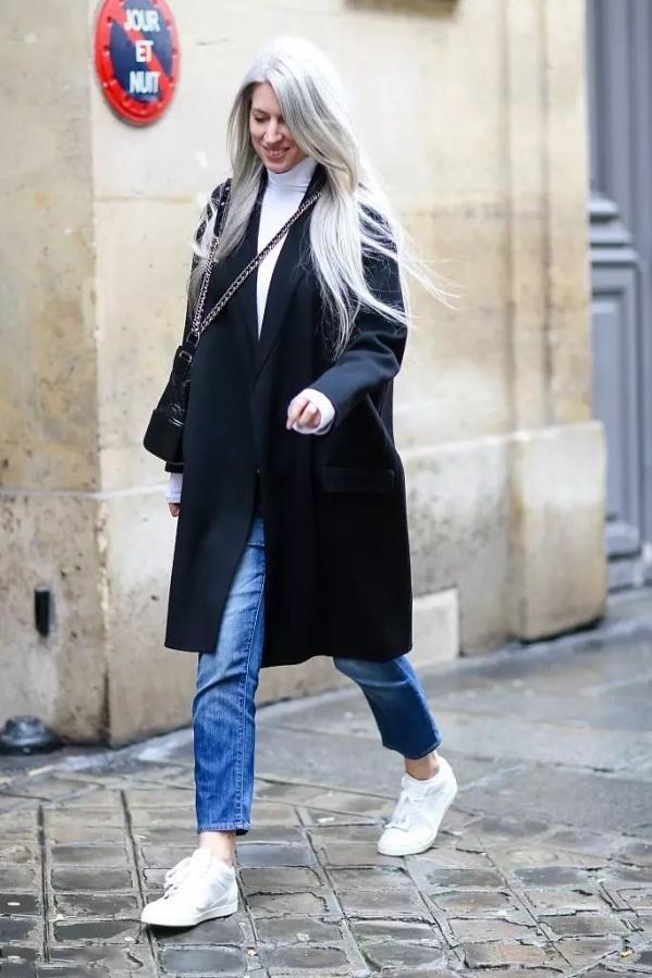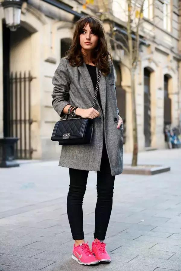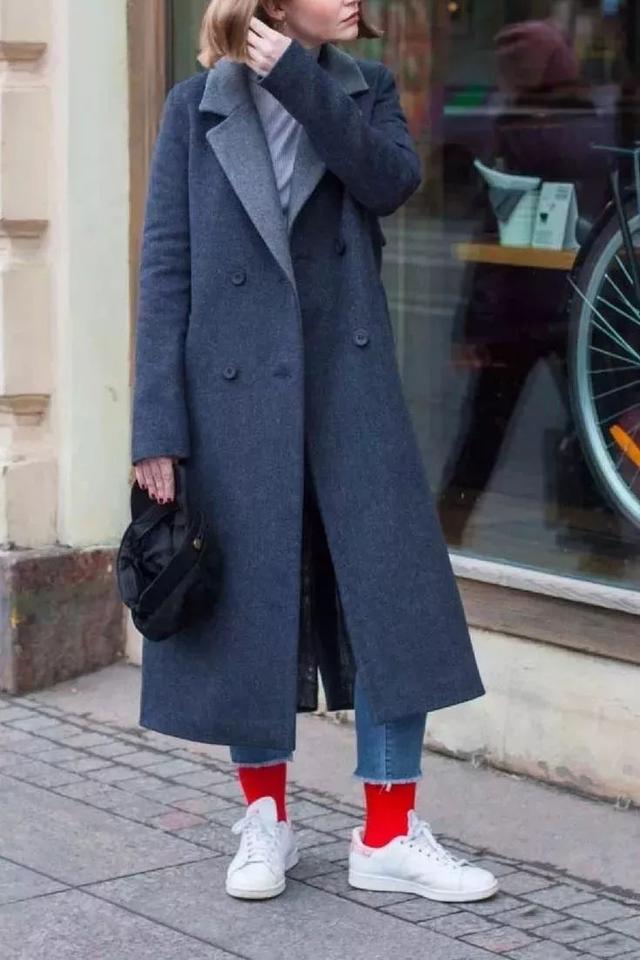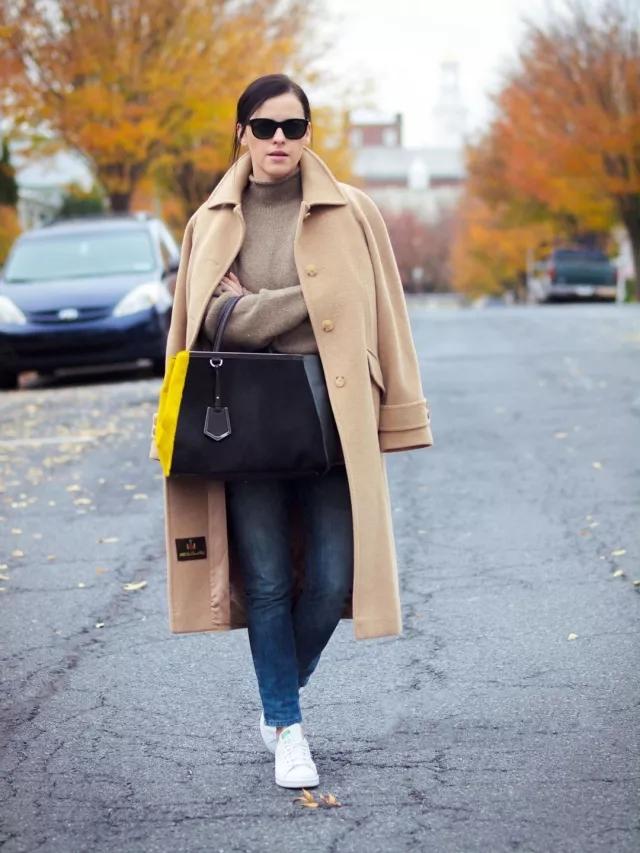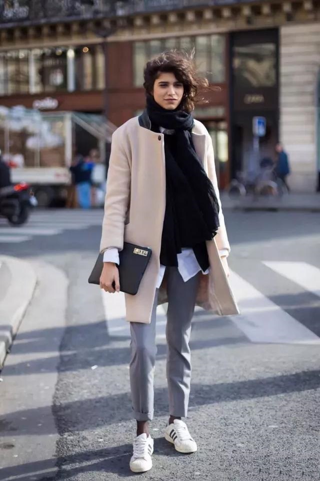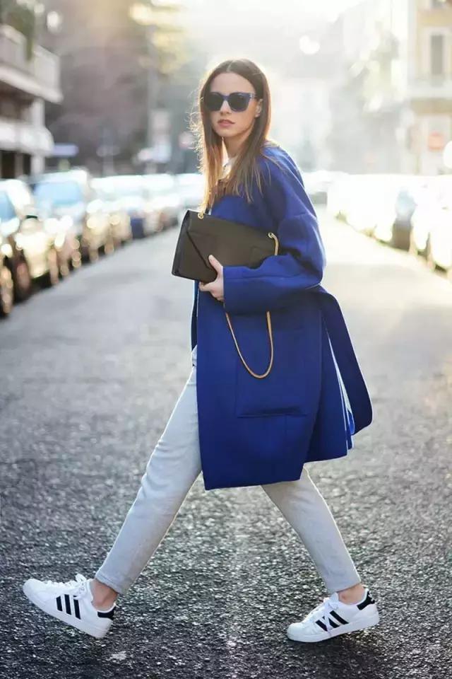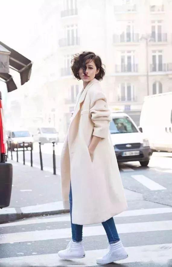 大衣+ 球鞋,你看她們都在穿