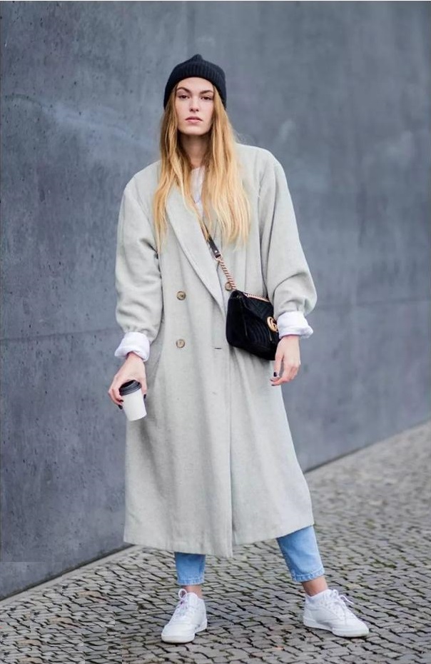 灰色大衣+小白鞋最適合你啦