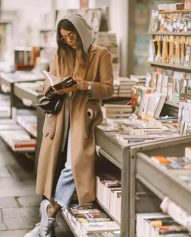 長大衣、牛仔褲、白球鞋,這樣的背影是不是很美呢?