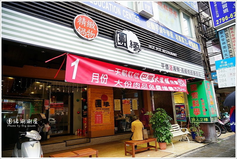 ▼「團緣涮涮屋」就位於台北市內湖區成功路三段上,捷運文德站與內湖站中間,門口就是公車站牌「成功路三段」,附近也有兩個停車場,交通還算方便!門口掛有一月份的優惠,只要一天前預約就送大生蠔,大份肉品免費增量33%,看得我們整個都熱血沸騰了起來!