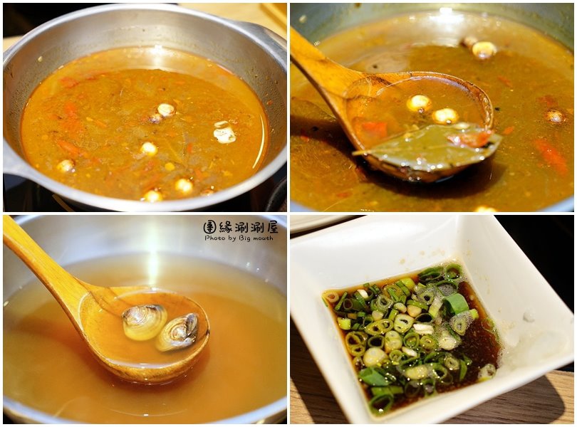 ▼我們選了藥膳麻辣與干貝昆布兩種湯底,藥膳麻辣是採用雞骨、豬大骨、多種蔬菜熬成高湯後再加入四川青紅花椒、多種中藥材、辣豆瓣與乾辣椒下去調製而成,喝起來香麻微辣不嗆口,小辣的辣度對於大口來說滿剛好的!另外干貝昆布是特別採用10種蔬果及昆布熬煮,再加入干貝、魚乾、香菇等熬製而成,只有加入海鹽調味,沒有多餘的添加,喝起來非常天然甘醇!水果醬油則是有加入水果的日式醬油,鹹度不高又帶點微微香甜,搭配火鍋頗為對味!