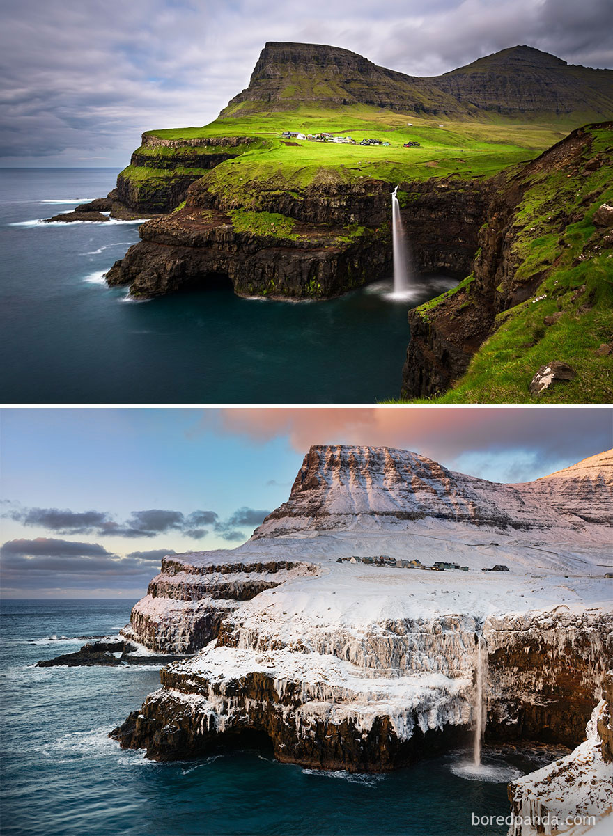 25張美到讓你停止呼吸的「世界名勝下雪前後對比照」!#1《冰雪奇緣》艾莎的城堡!