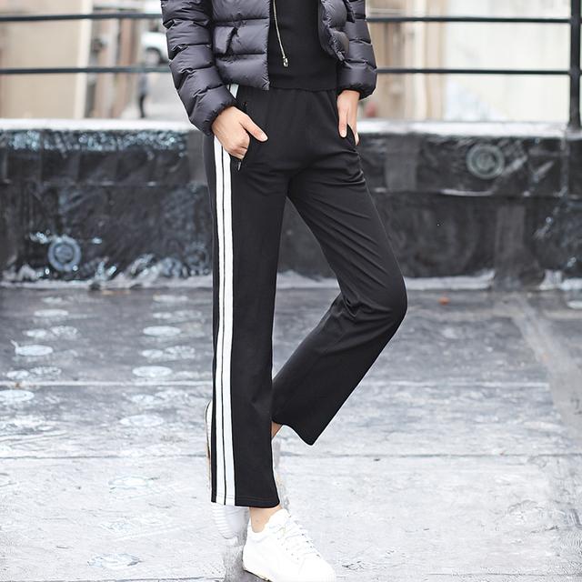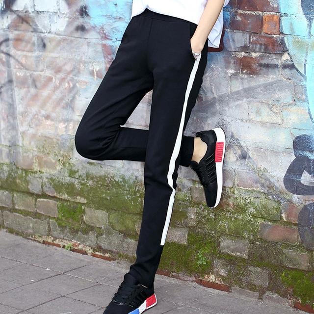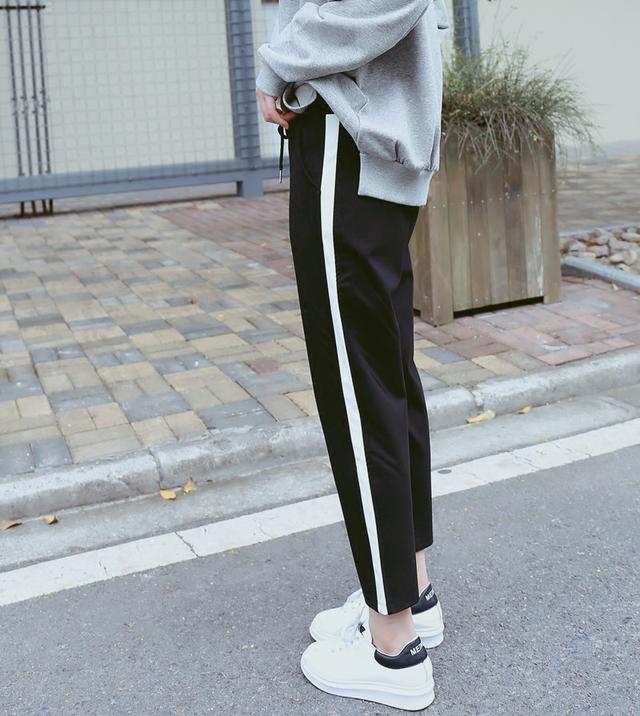 修身款的側邊條紋運動褲只要不是胖妹妹都適合穿哦,