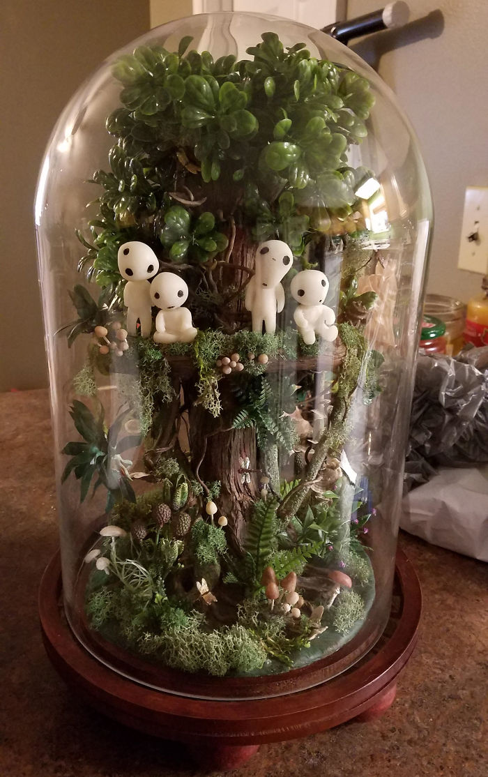 她把宮崎駿《魔法公主》小精靈捕捉到「透明玻璃森林世界」!一打開LED燈美到花10萬買也願意!
